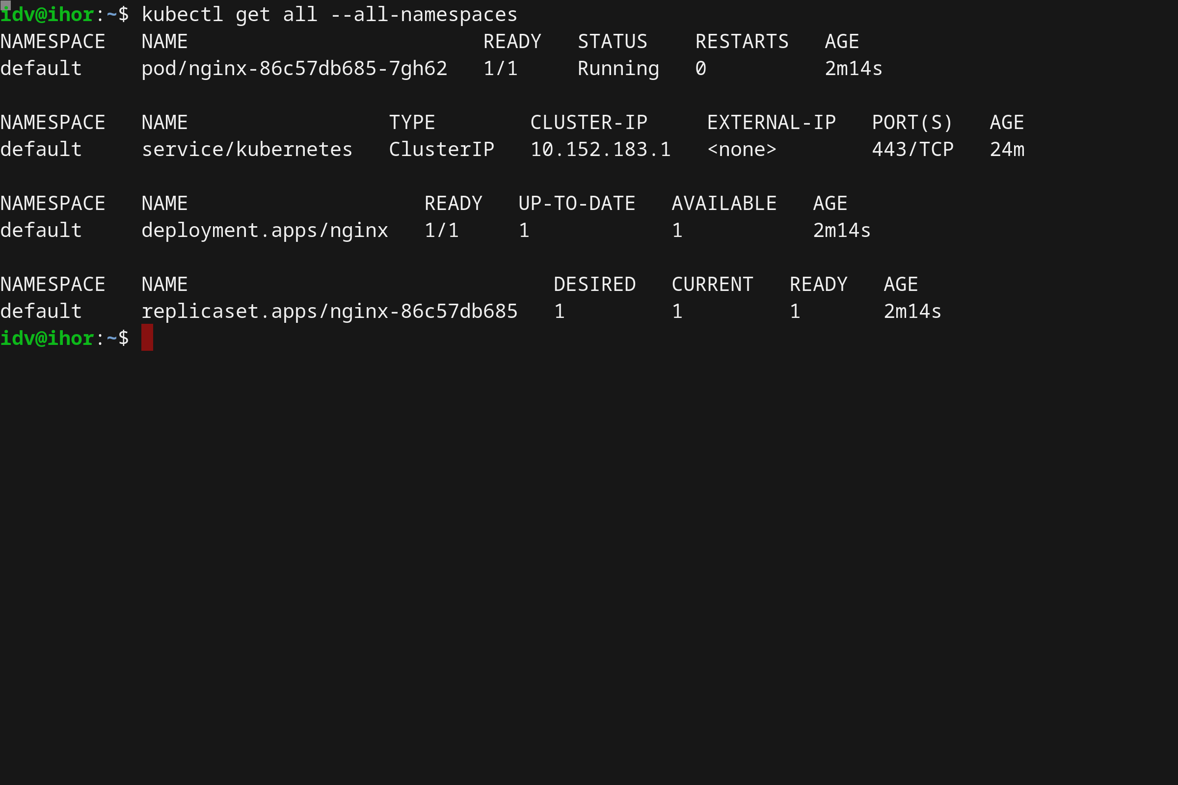 Also, we can retrieve the full output of all available objects within our Kubernetes cluster: